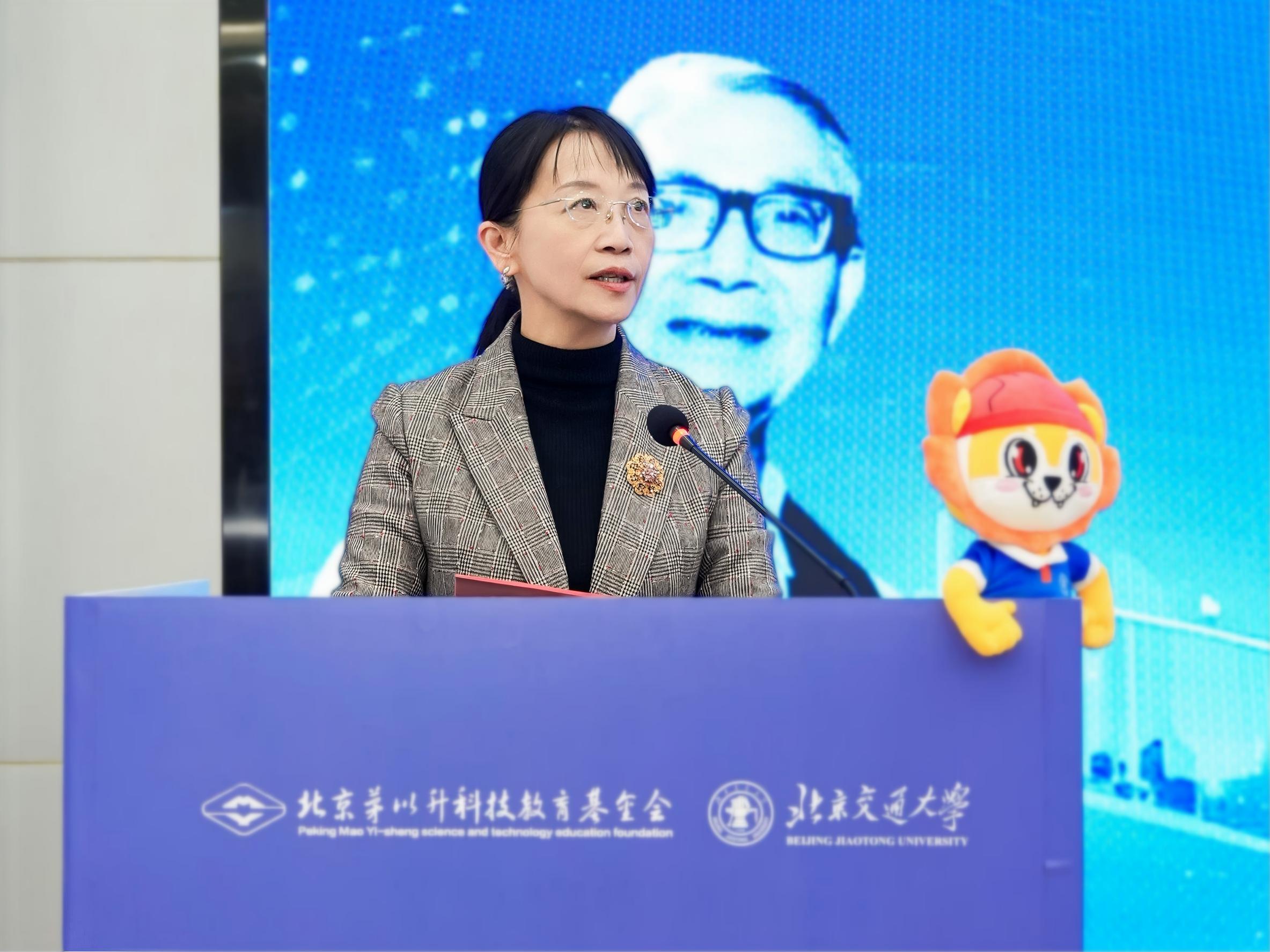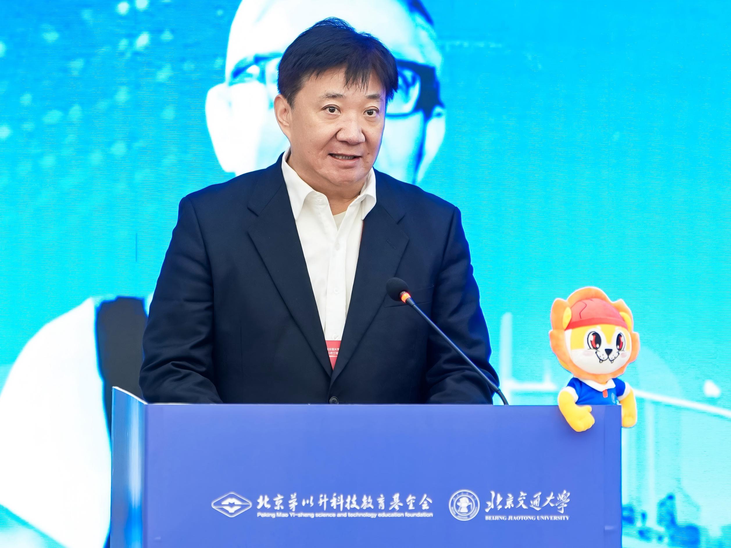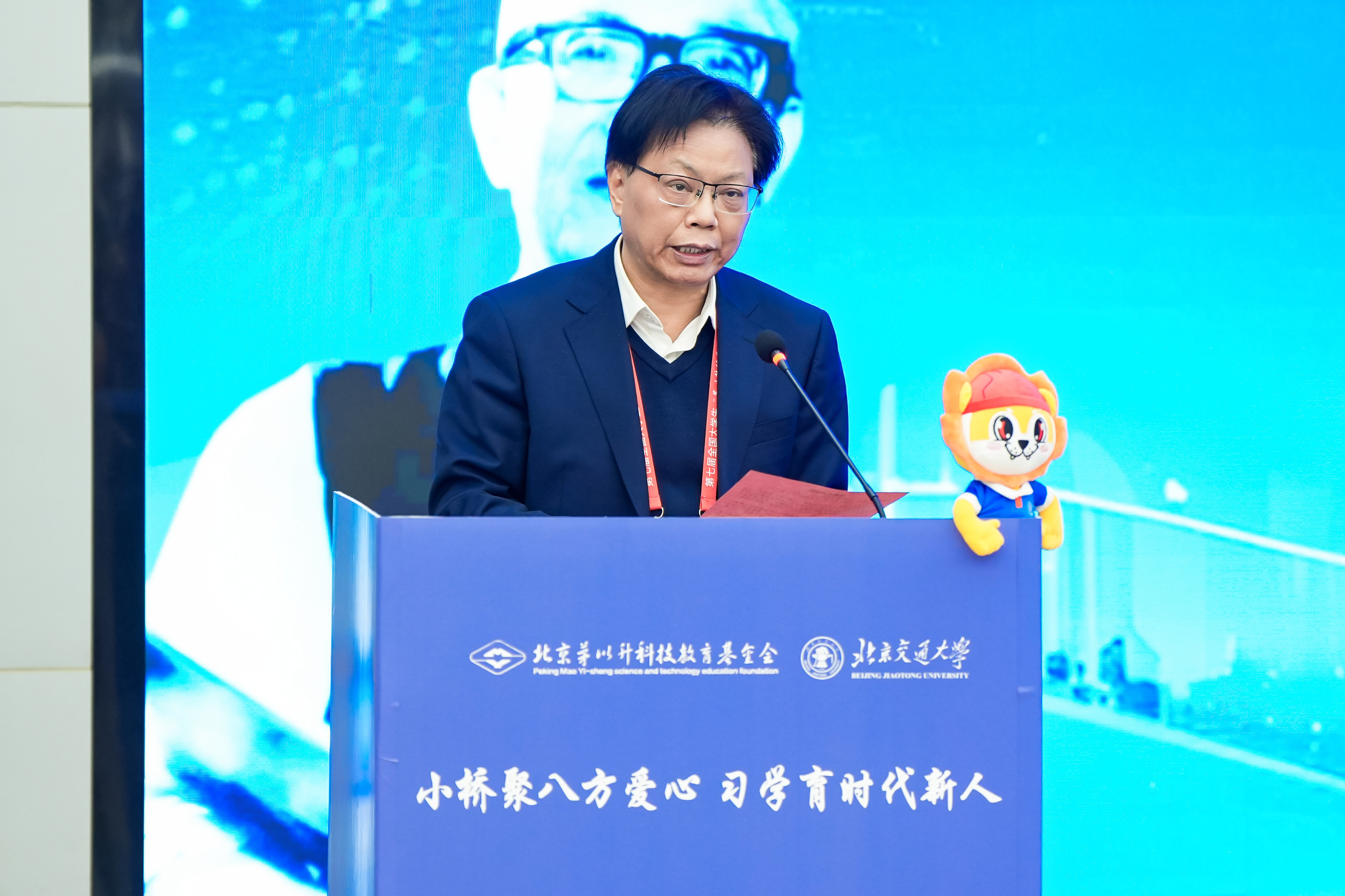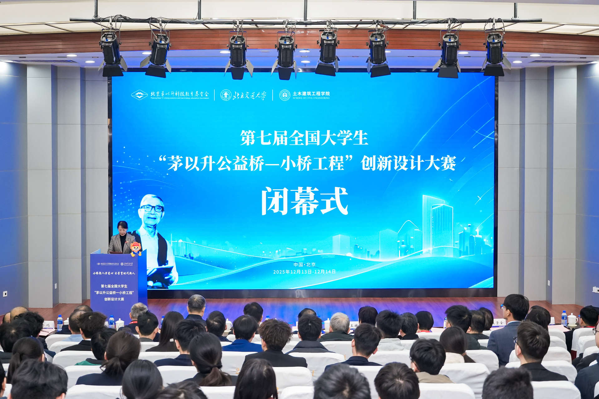 北京茅以升科技教育基金会理事长茅为中致闭幕词。他对北京交通大学精心筹备本届大赛表示感谢,并鼓励广大同学以赛促学,不断提升社会责任感、创新意识、团队精神和实践能力。