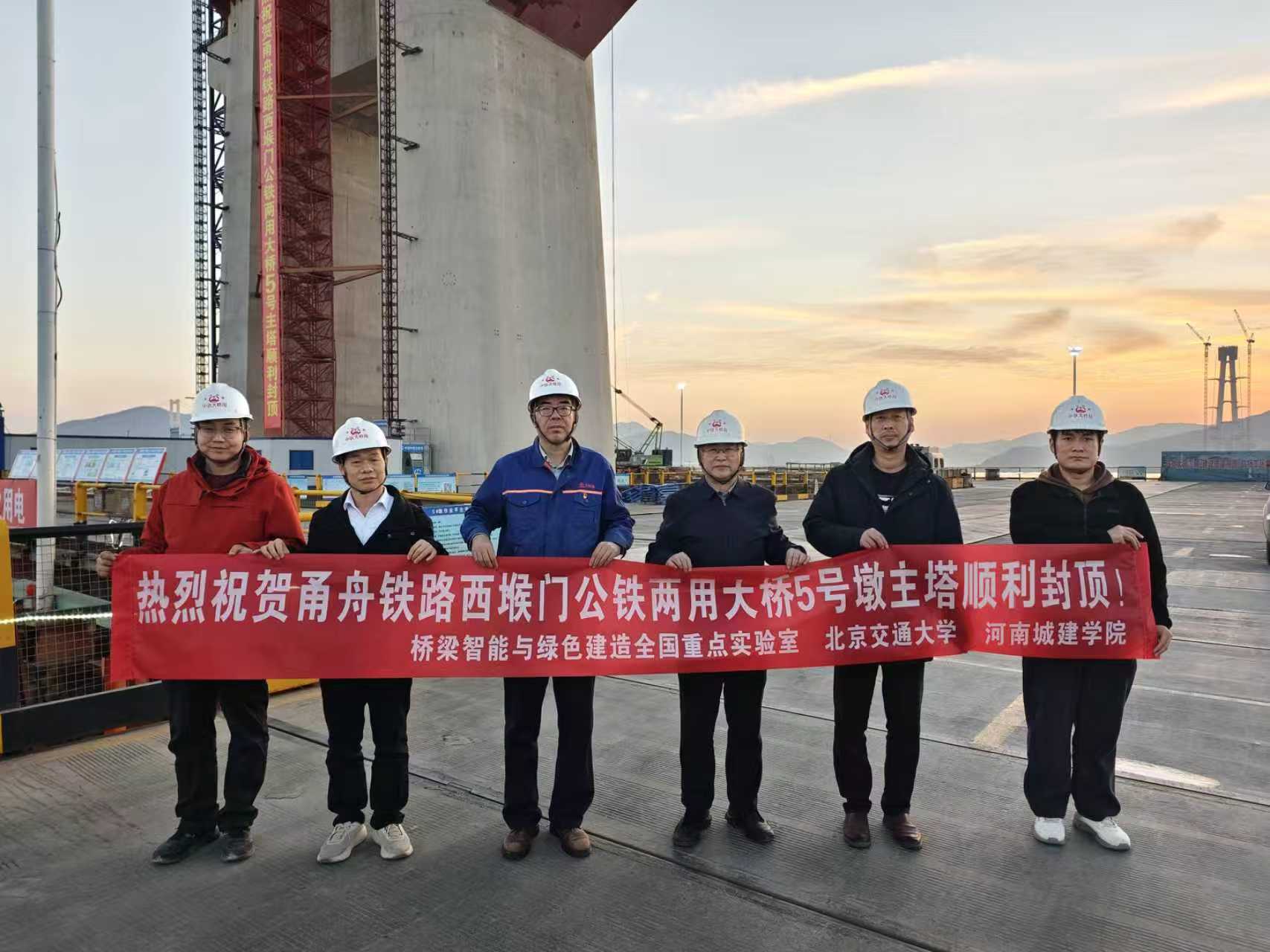 2025年12月30日,甬舟铁路西堠门公铁两用大桥首座主塔顺利封顶,央视等多家媒体进行了直播报道。该主塔高294米,刷新了世界海中桥梁主塔高度的纪录,成为世界第一高海上桥塔。赌博网站 安明喆教授团队依托“复杂海洋环境下超千米级斜拉悬索协作体系公铁两用桥建造技术及装备研究”项目,与中铁大桥局共同主持完成了海洋环境下超高混凝土主塔施工技术研究,系统性解决了海洋环境下高耐久混凝土制备、海上超高距离泵送与高空养护、强约束条件下混凝土抗裂等技术难题,为超级工程建设提供了关键技术支撑,充分彰显了赌博网站 科研服务国家重大战略需求的科研实力与责任担当,也是继世界首座跨度超千米的公铁两用沪苏通长江大桥桥塔建造提供科研支持后,团队第二次为世界级桥梁的建设赋能。